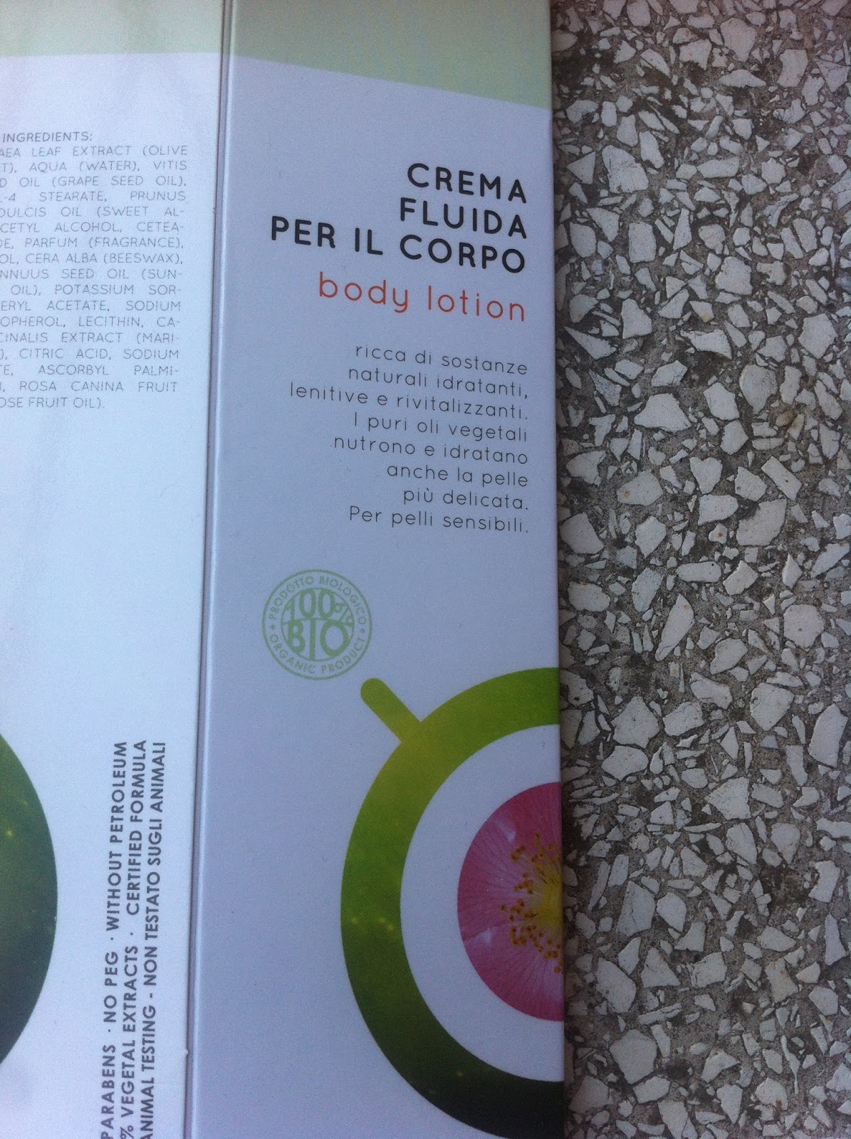 - L'Inci: la fila di ingredienti che vi ho postato qui sopra l'ho presa di peso dal sito del produttore (https://shop.arangara.com/essenziale-corpo/crema-fluida-olivo-rosa-detail.html), mentre quello sulla confezione è diverso, e lo trovate fotografato qui sotto. Spero che lo correggano, anche se non saprei dire QUALE dei due debbano correggere....